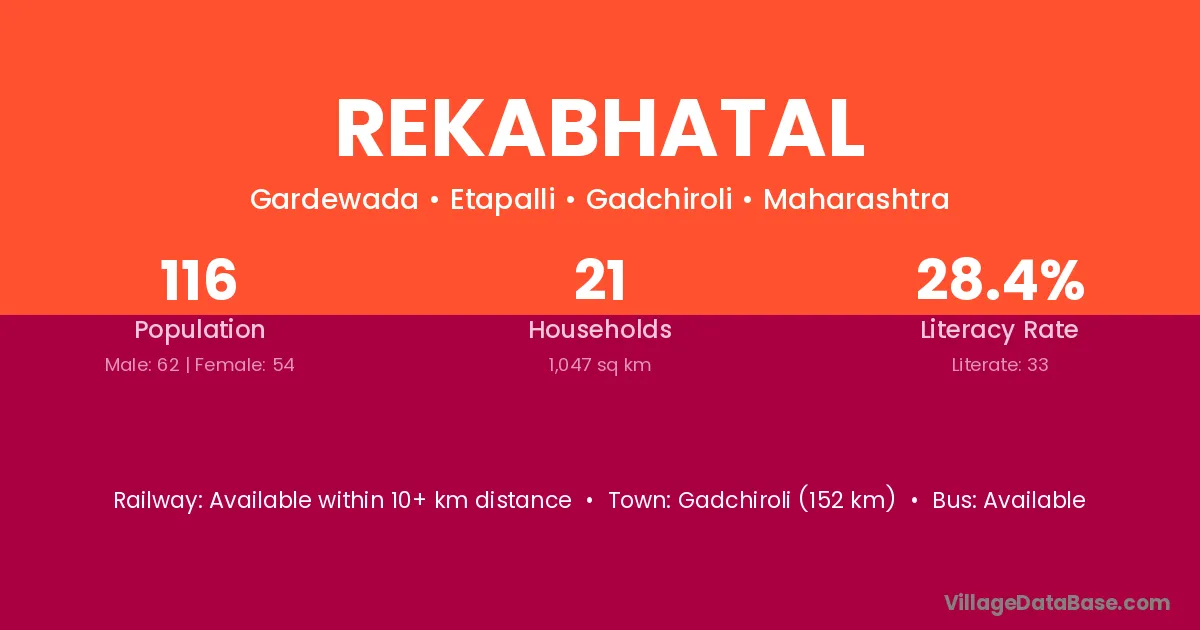 Gadchiroli (152 km) is the nearest town to Rekabhatal village for major economic activities and is located approximately 152 km away.
