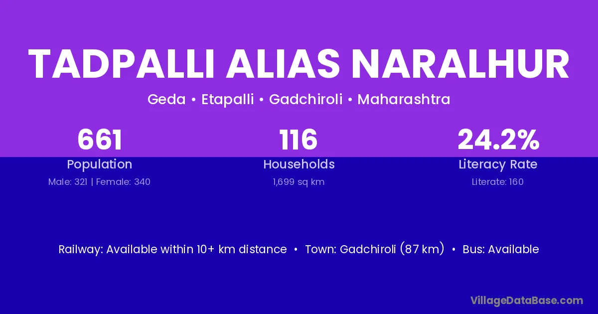 Tadpalli Alias Naralhur village has a total population of 661 people, of which 321 are males and 340 are females.