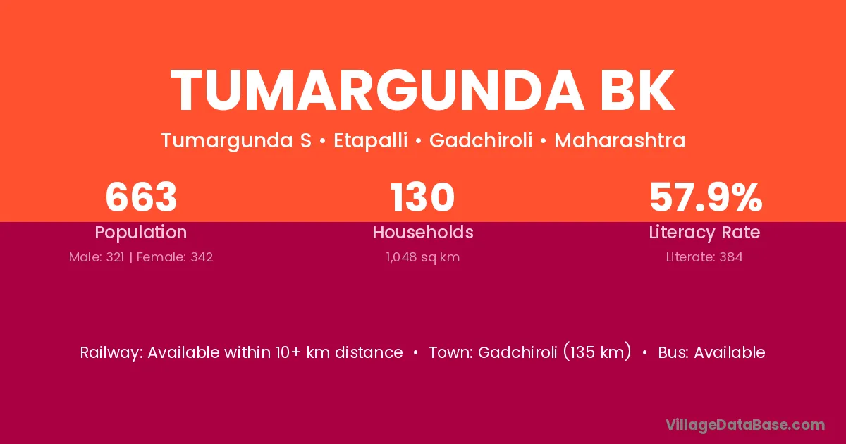 Tumargunda Bk village has a total population of 663 people, of which 321 are males and 342 are females.