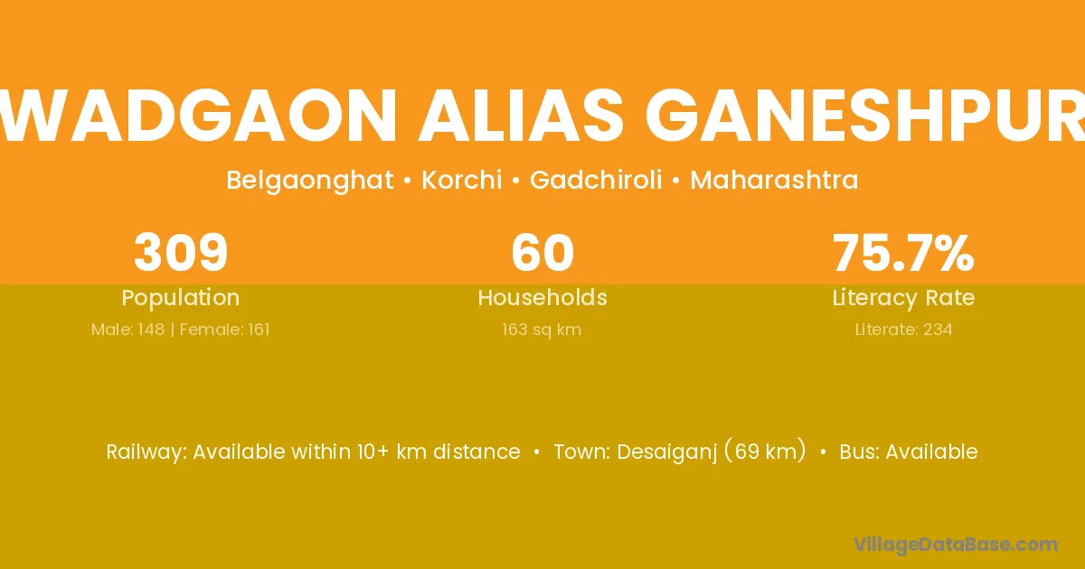 Wadgaon Alias Ganeshpur village has a total population of 309 people, of which 148 are males and 161 are females.