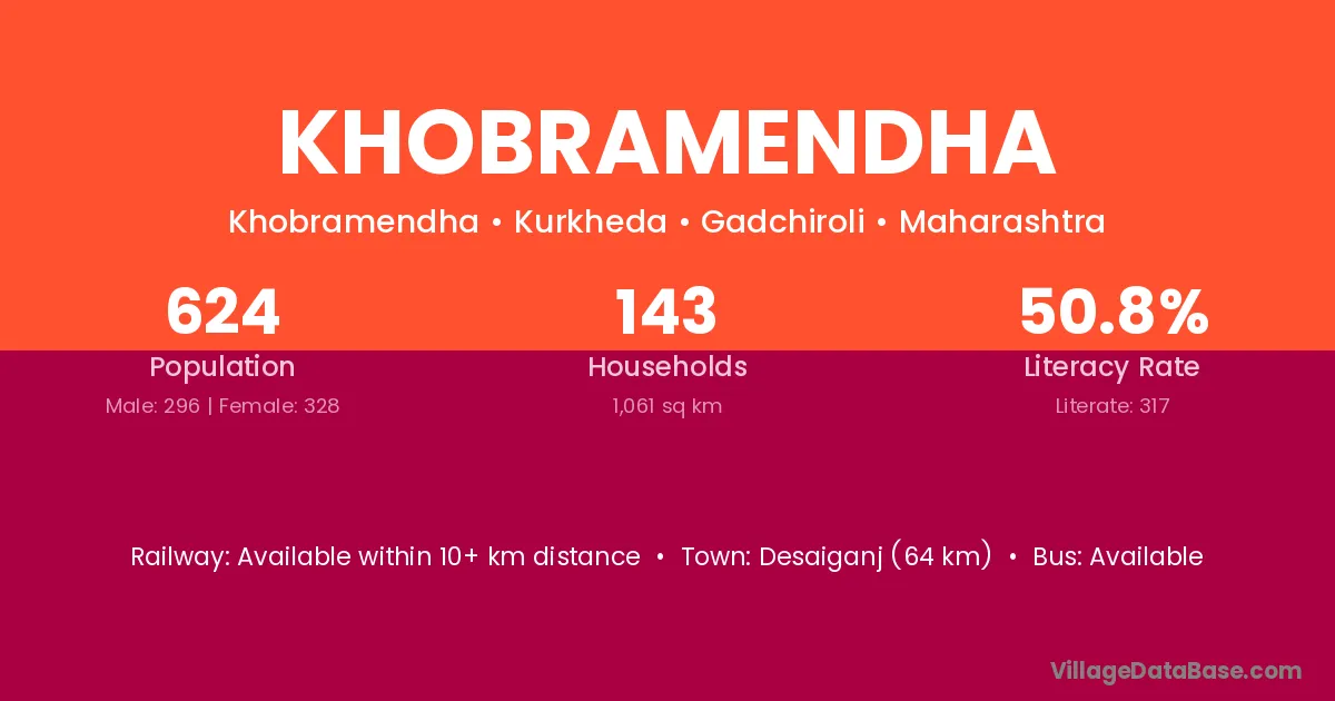 Desaiganj (64 km) is the nearest town to Khobramendha village for major economic activities and is located approximately 64 km away.