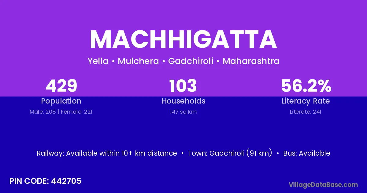 Machhigatta village has a total population of 429 people, of which 208 are males and 221 are females.