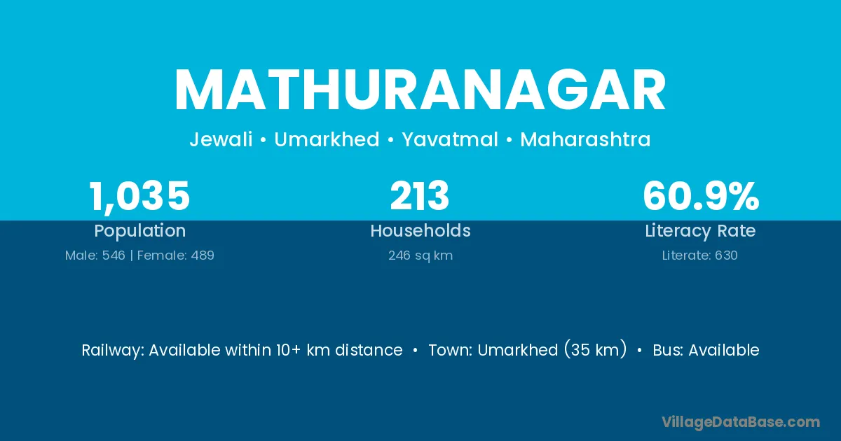 Gadchiroli (108 km) is the nearest town to Mathuranagar village for major economic activities and is located approximately 108 km away.