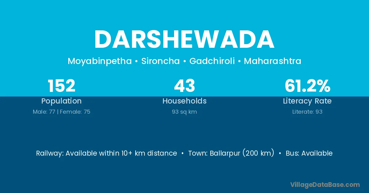 Darshewada village has a total population of 152 people, of which 77 are males and 75 are females.