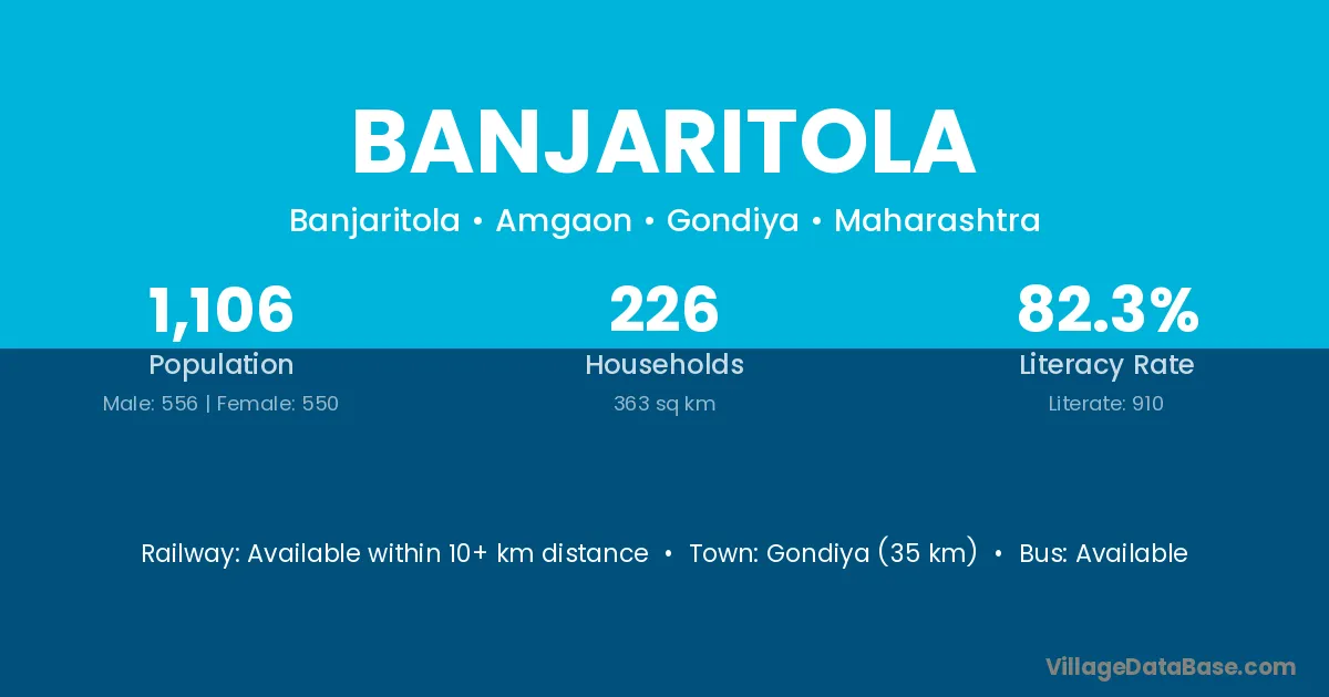 Gondiya (35 km) is the nearest town to Banjaritola village for major economic activities and is located approximately 35 km away.