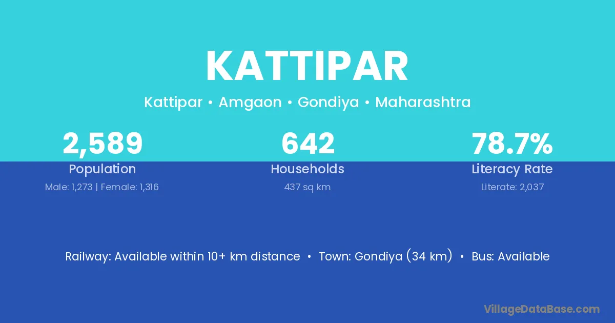 Gondiya (34 km) is the nearest town to Kattipar village for major economic activities and is located approximately 34 km away.