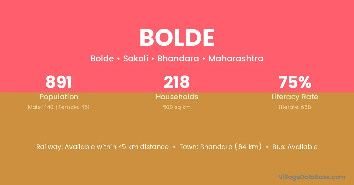 Desaiganj (44 km) is the nearest town to Bolde village for major economic activities and is located approximately 44 km away.