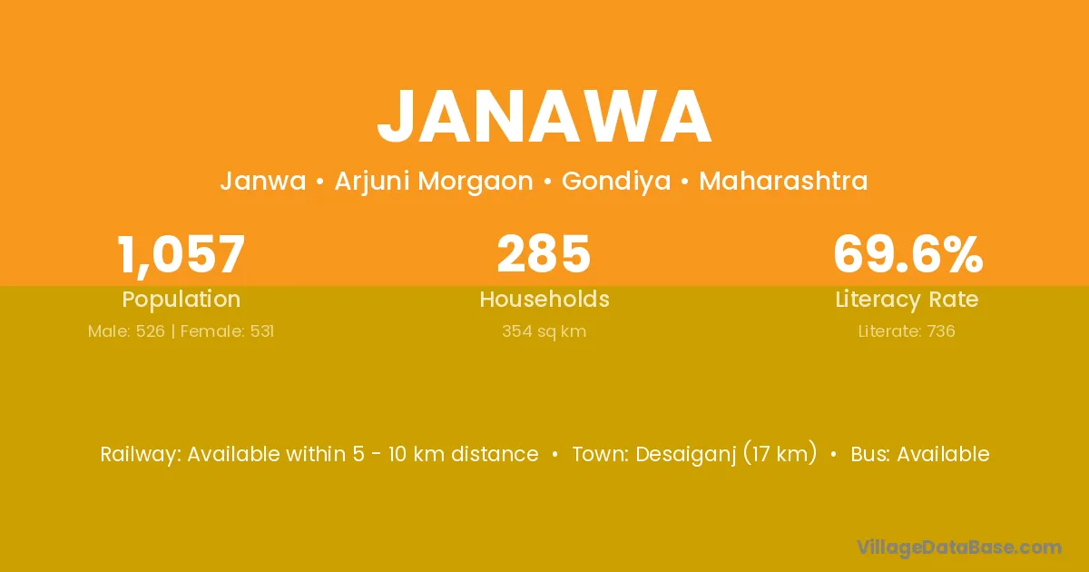 Desaiganj (17 km) is the nearest town to Janawa village for major economic activities and is located approximately 17 km away.