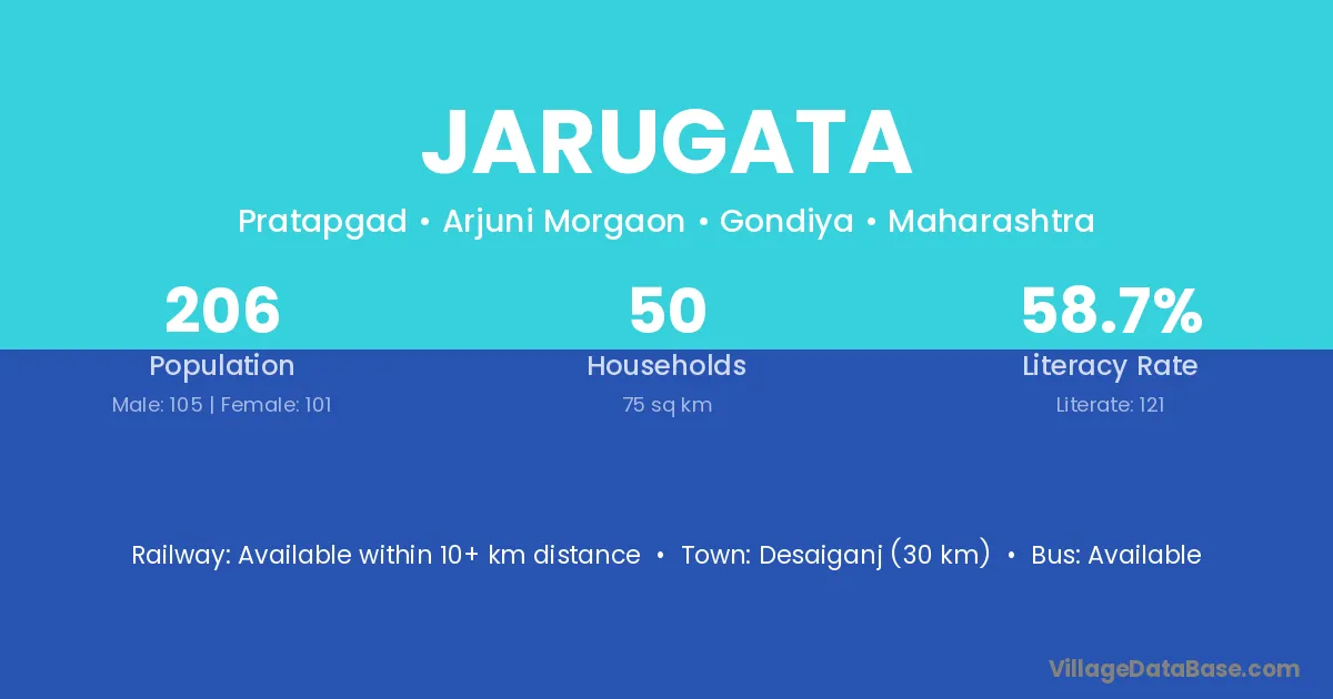 Desaiganj (30 km) is the nearest town to Jarugata village for major economic activities and is located approximately 30 km away.