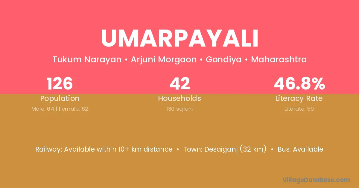 Umarpayali village has a total population of 126 people, of which 64 are males and 62 are females.