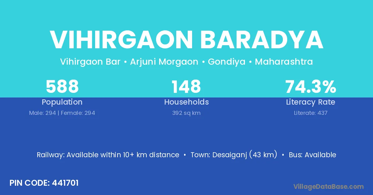 Desaiganj (43 km) is the nearest town to Vihirgaon Baradya village for major economic activities and is located approximately 43 km away.