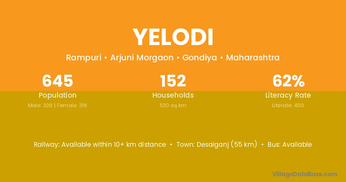 Desaiganj (55 km) is the nearest town to Yelodi village for major economic activities and is located approximately 55 km away.