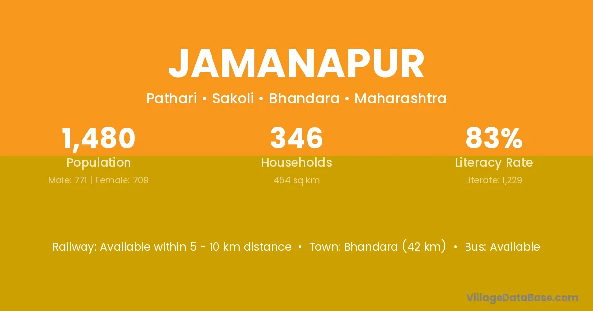 Gondiya (70 km) is the nearest town to Jamanapur village for major economic activities and is located approximately 70 km away.
