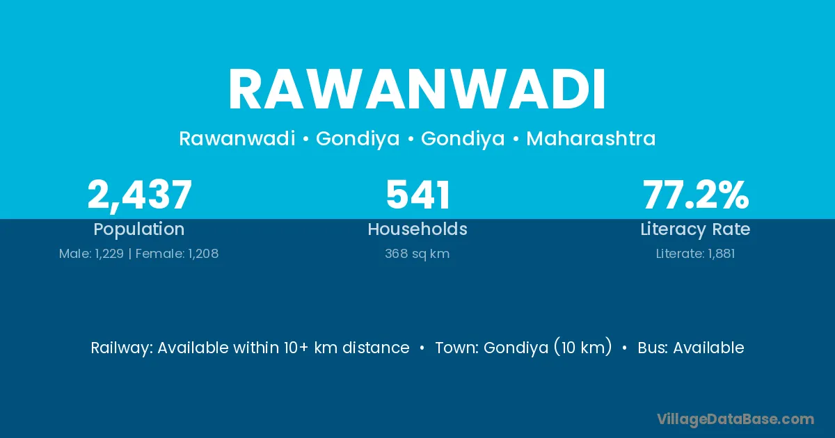 Gondiya (10 km) is the nearest town to Rawanwadi village for major economic activities and is located approximately 10 km away.