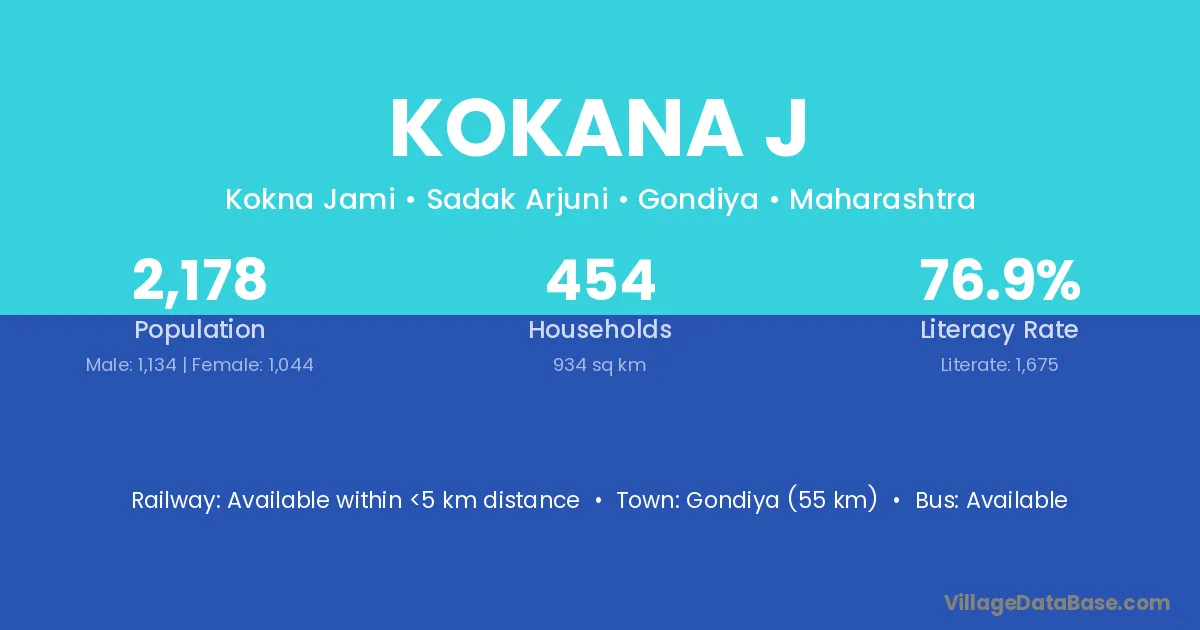 Gondiya (55 km) is the nearest town to Kokana J village for major economic activities and is located approximately 55 km away.