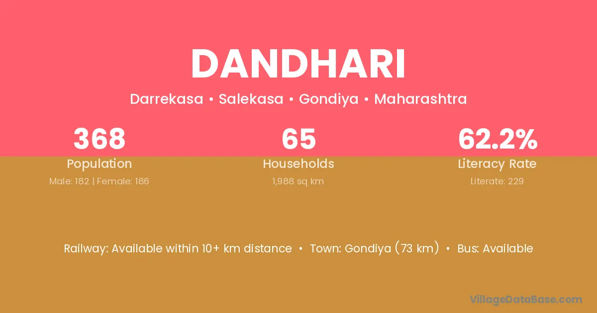 Gondiya (73 km) is the nearest town to Dandhari village for major economic activities and is located approximately 73 km away.