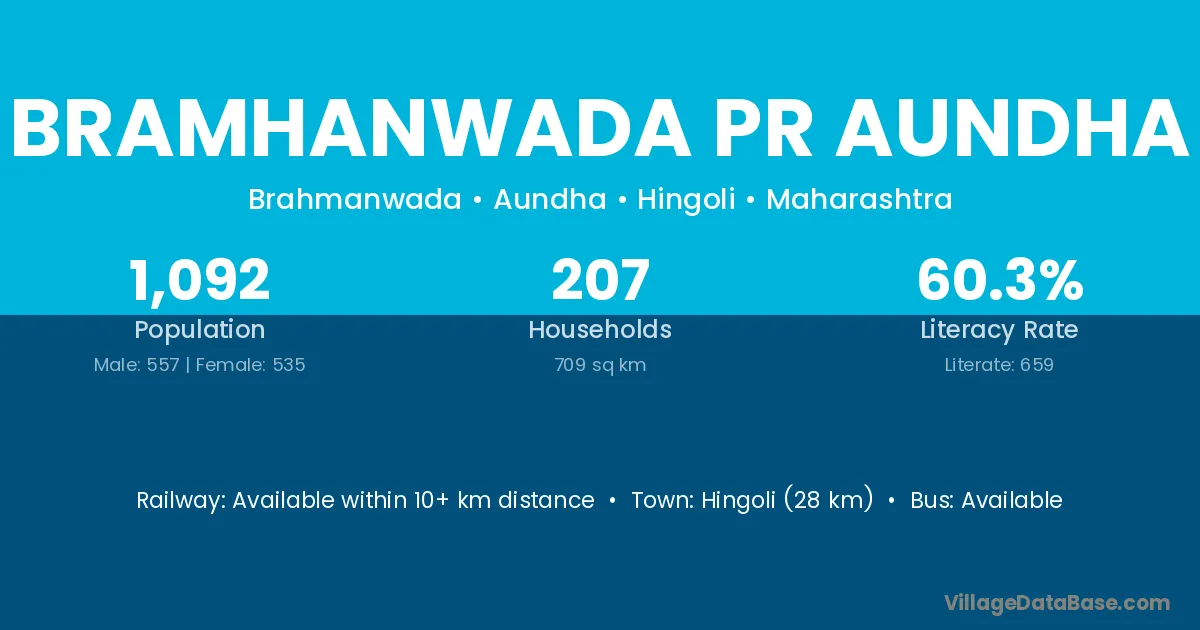 Bramhanwada Pr Aundha village has a total population of 1,092 people, of which 557 are males and 535 are females.