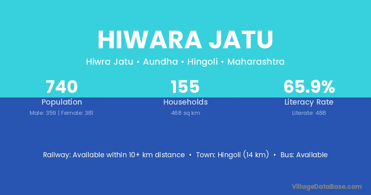 Hingoli (14 km) is the nearest town to Hiwara Jatu village for major economic activities and is located approximately 14 km away.