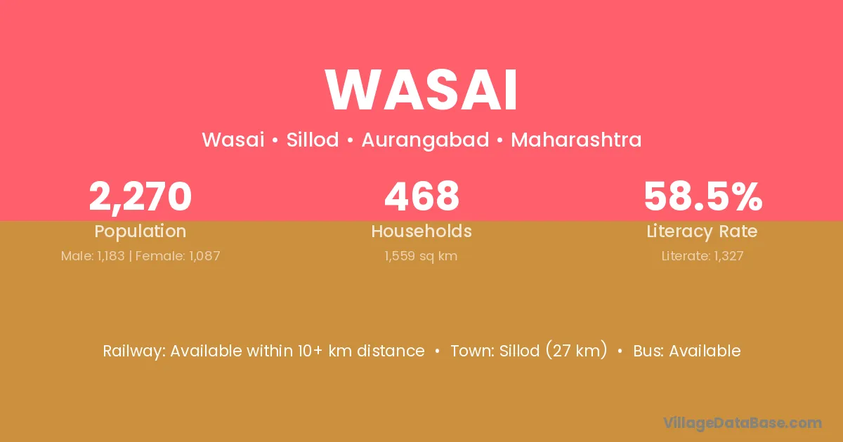 Hingoli (11 km) is the nearest town to Wasai village for major economic activities and is located approximately 11 km away.