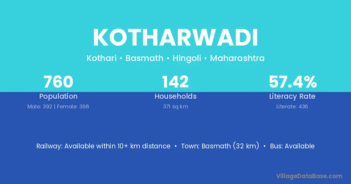 Kotharwadi village has a total population of 760 people, of which 392 are males and 368 are females.