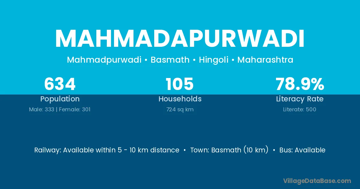 Basmath (10 km) is the nearest town to Mahmadapurwadi village for major economic activities and is located approximately 10 km away.