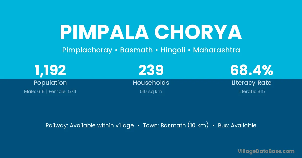 Basmath (10 km) is the nearest town to Pimpala Chorya village for major economic activities and is located approximately 10 km away.