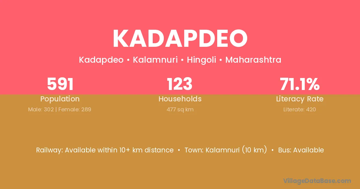 Kalamnuri (10 km) is the nearest town to Kadapdeo village for major economic activities and is located approximately 10 km away.