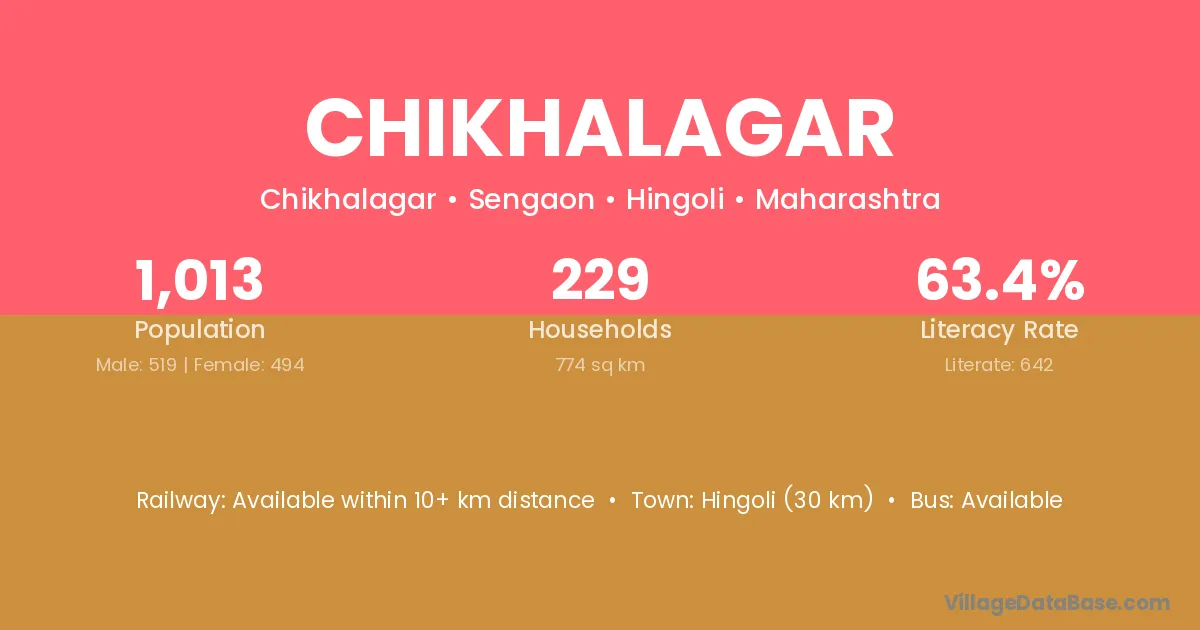 Hingoli (30 km) is the nearest town to Chikhalagar village for major economic activities and is located approximately 30 km away.