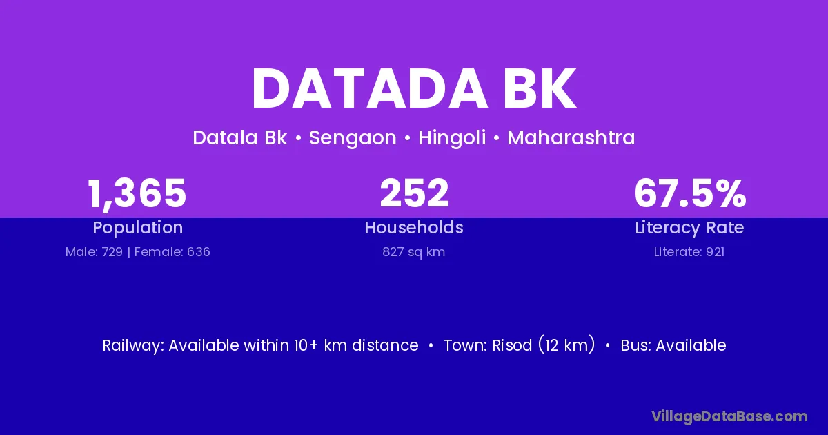 Risod (12 km) is the nearest town to Datada Bk village for major economic activities and is located approximately 12 km away.