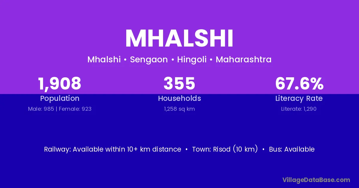 Risod (10 km) is the nearest town to Mhalshi village for major economic activities and is located approximately 10 km away.
