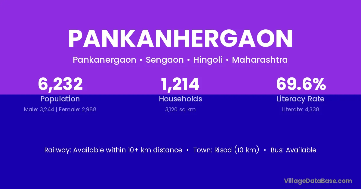 Risod (10 km) is the nearest town to Pankanhergaon village for major economic activities and is located approximately 10 km away.