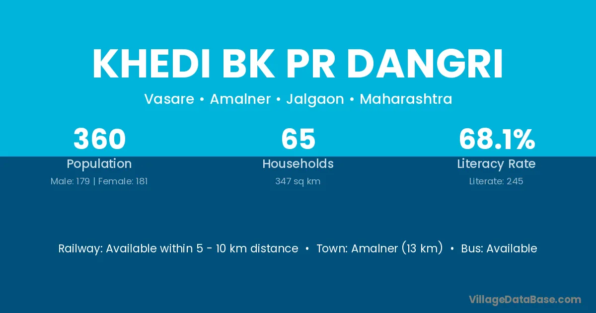 Khedi Bk Pr Dangri village has a total population of 360 people, of which 179 are males and 181 are females.