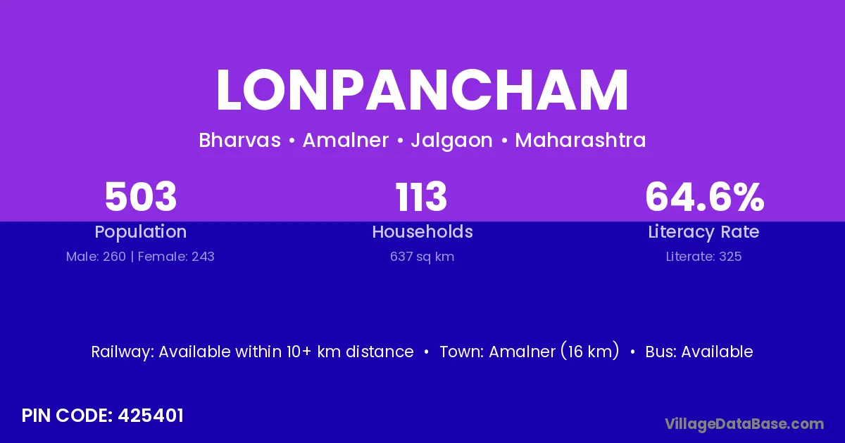 Amalner (16 km) is the nearest town to Lonpancham village for major economic activities and is located approximately 16 km away.