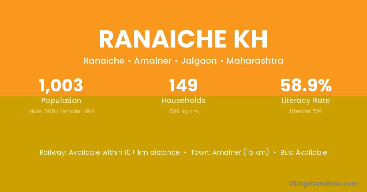 Amalner (15 km) is the nearest town to Ranaiche Kh village for major economic activities and is located approximately 15 km away.