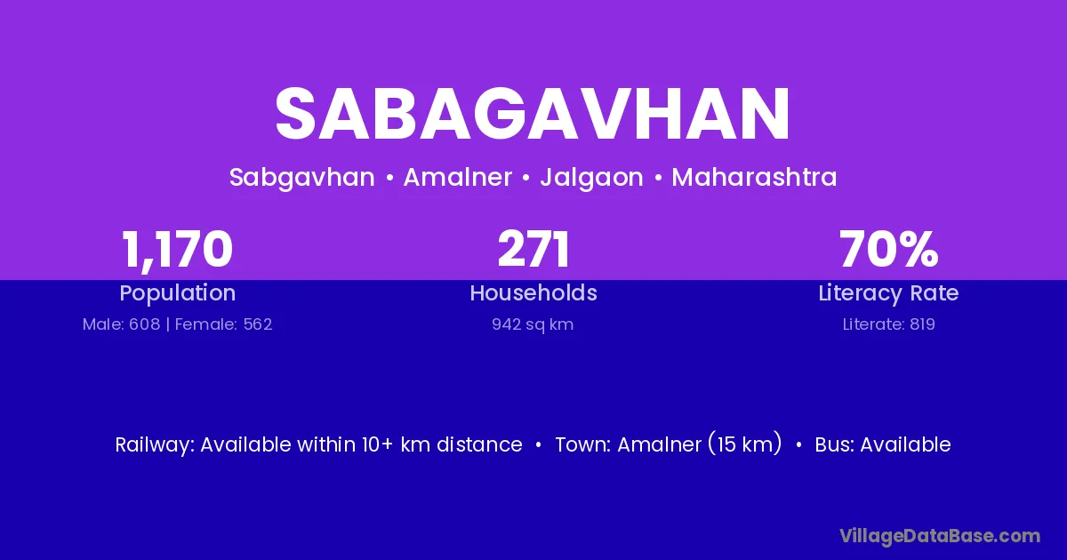 Amalner (15 km) is the nearest town to Sabagavhan village for major economic activities and is located approximately 15 km away.