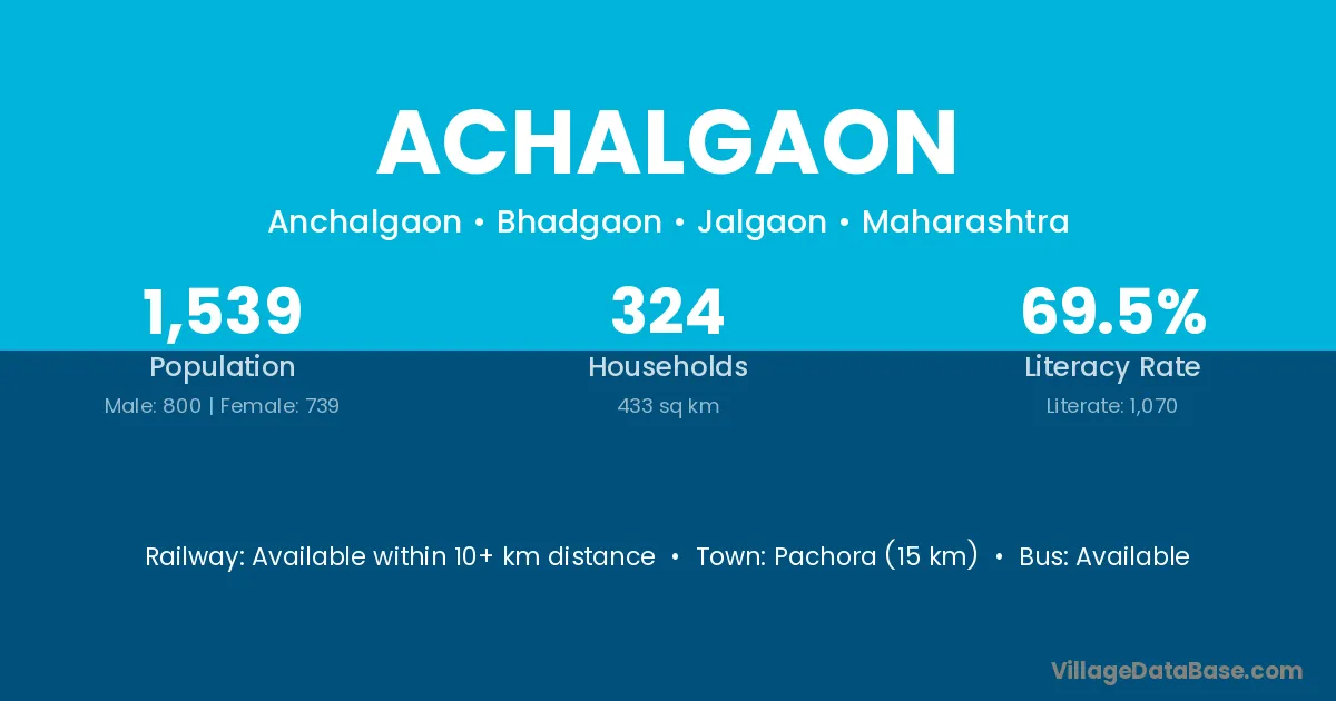 Pachora (15 km) is the nearest town to Achalgaon village for major economic activities and is located approximately 15 km away.