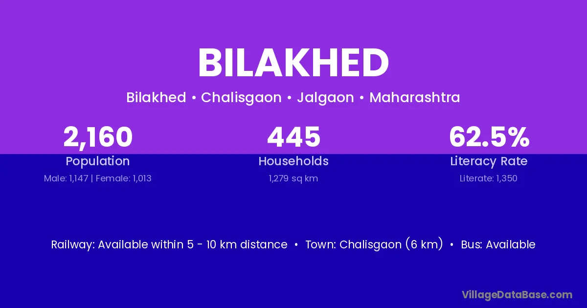 Chalisgaon (6 km) is the nearest town to Bilakhed village for major economic activities and is located approximately 6 km away.