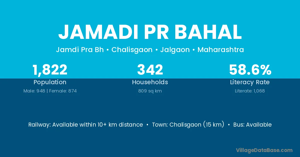 Chalisgaon (15 km) is the nearest town to Jamadi Pr Bahal village for major economic activities and is located approximately 15 km away.