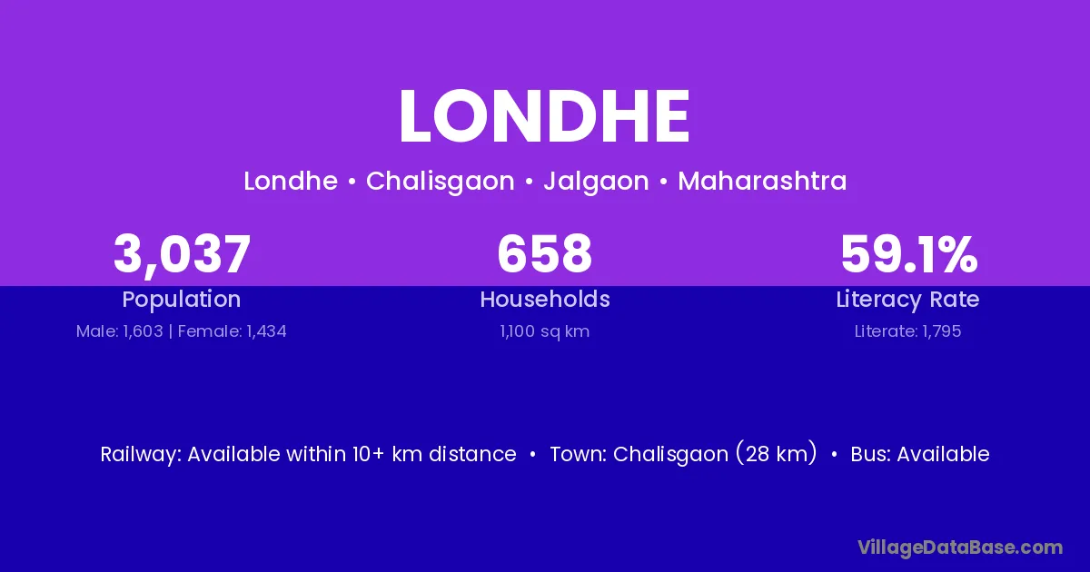 Chalisgaon (28 km) is the nearest town to Londhe village for major economic activities and is located approximately 28 km away.