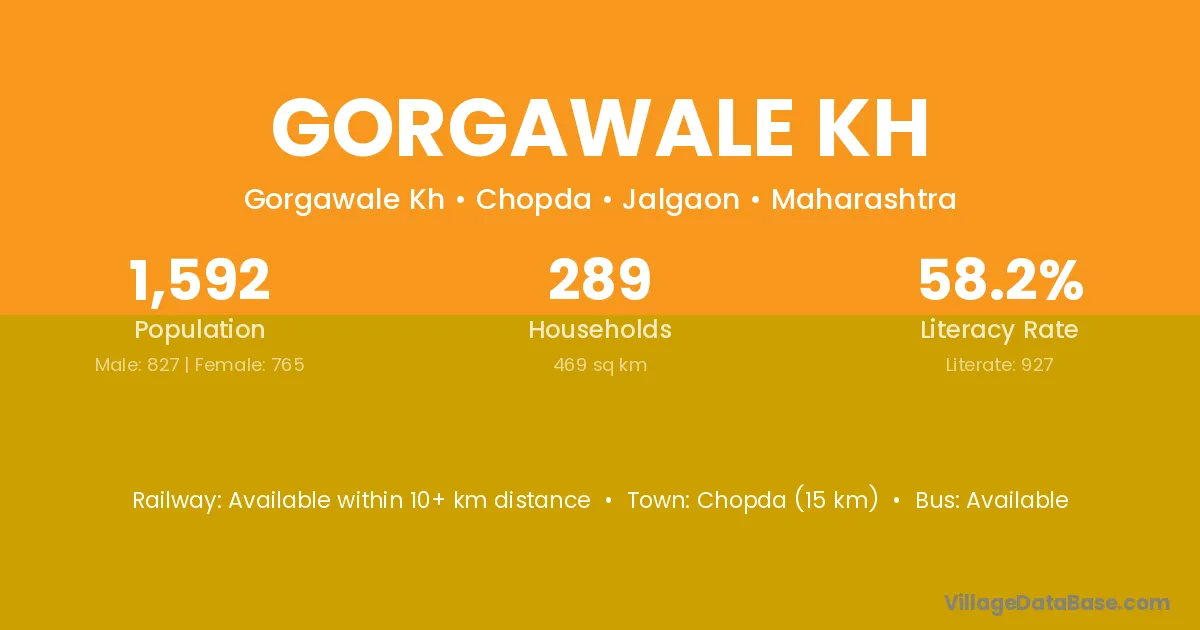 Chopda (15 km) is the nearest town to Gorgawale Kh village for major economic activities and is located approximately 15 km away.