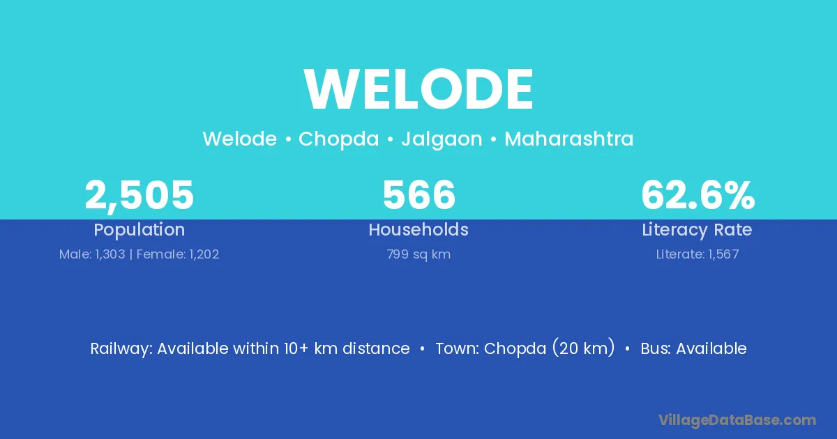 Chopda (20 km) is the nearest town to Welode village for major economic activities and is located approximately 20 km away.