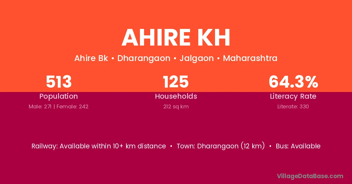 Ahire Kh village has a total population of 513 people, of which 271 are males and 242 are females.