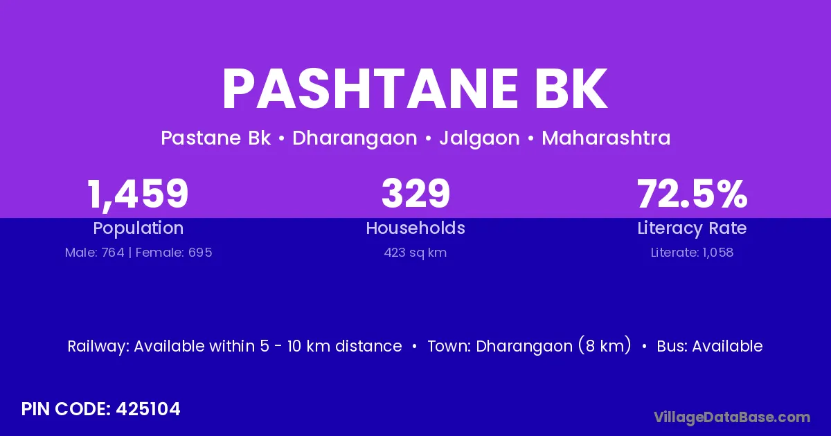 Dharangaon (8 km) is the nearest town to Pashtane Bk village for major economic activities and is located approximately 8 km away.