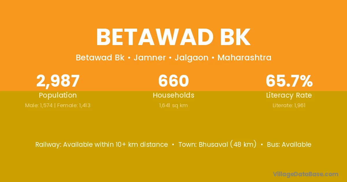 Bhusaval (48 km) is the nearest town to Betawad Bk village for major economic activities and is located approximately 48 km away.