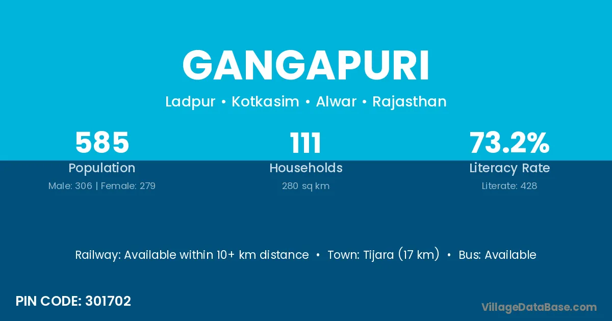 Gangapuri village has a total population of 717 people, of which 379 are males and 338 are females.