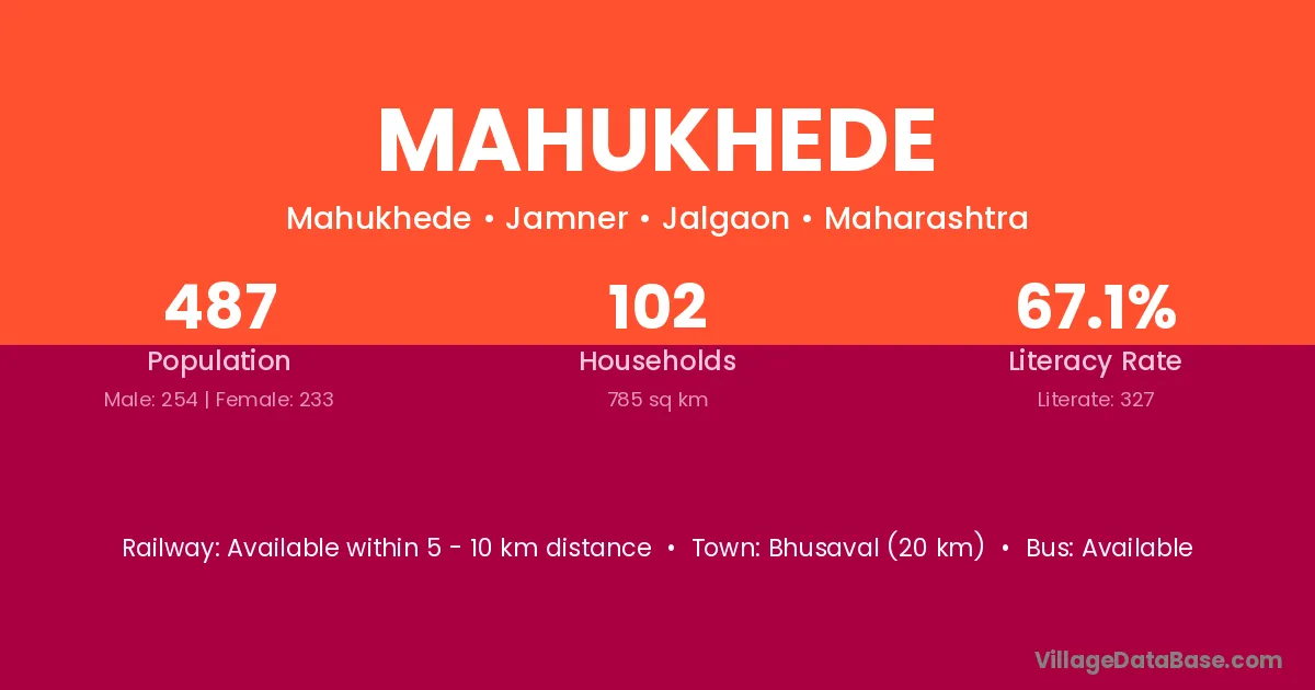 Bhusaval (20 km) is the nearest town to Mahukhede village for major economic activities and is located approximately 20 km away.