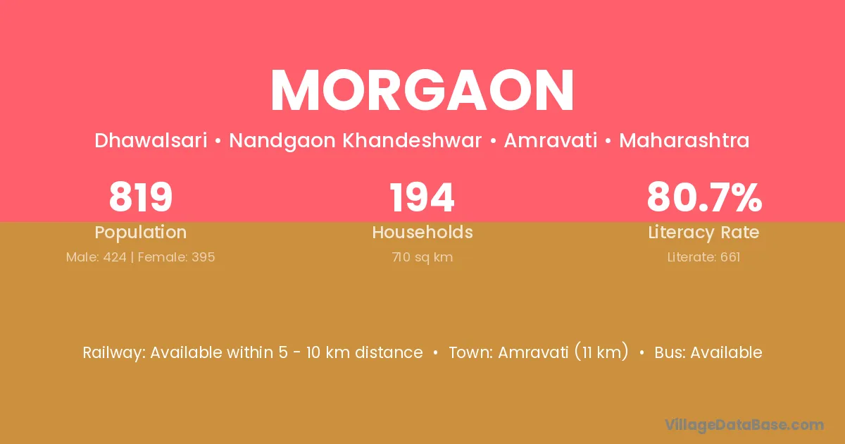 Jalgaon (35 km) is the nearest town to Morgaon village for major economic activities and is located approximately 35 km away.