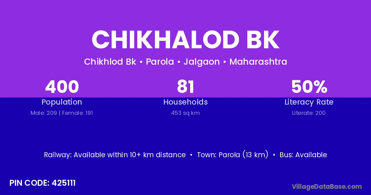 According to Census 2011 information, the village code of Chikhalod Bk village is 425111.