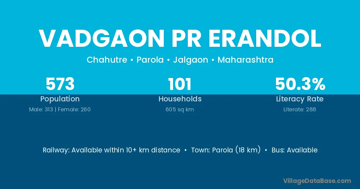 Vadgaon Pr Erandol village has a total population of 573 people, of which 313 are males and 260 are females.