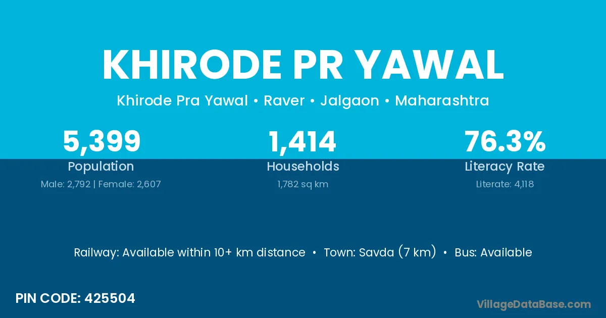 Savda (7 km) is the nearest town to Khirode Pr Yawal village for major economic activities and is located approximately 7 km away.